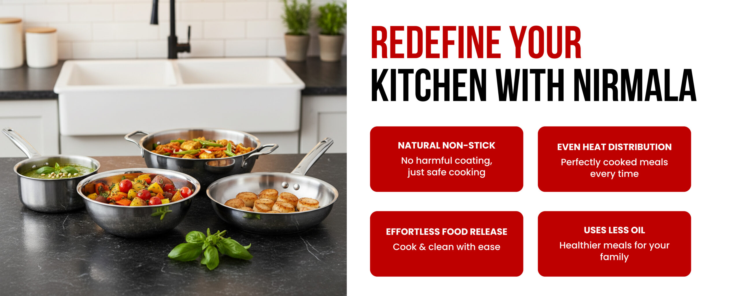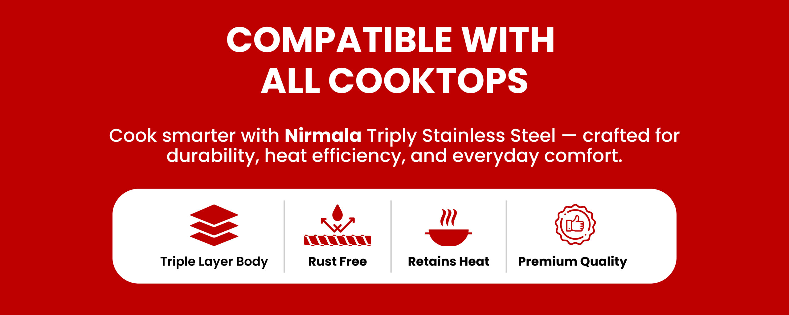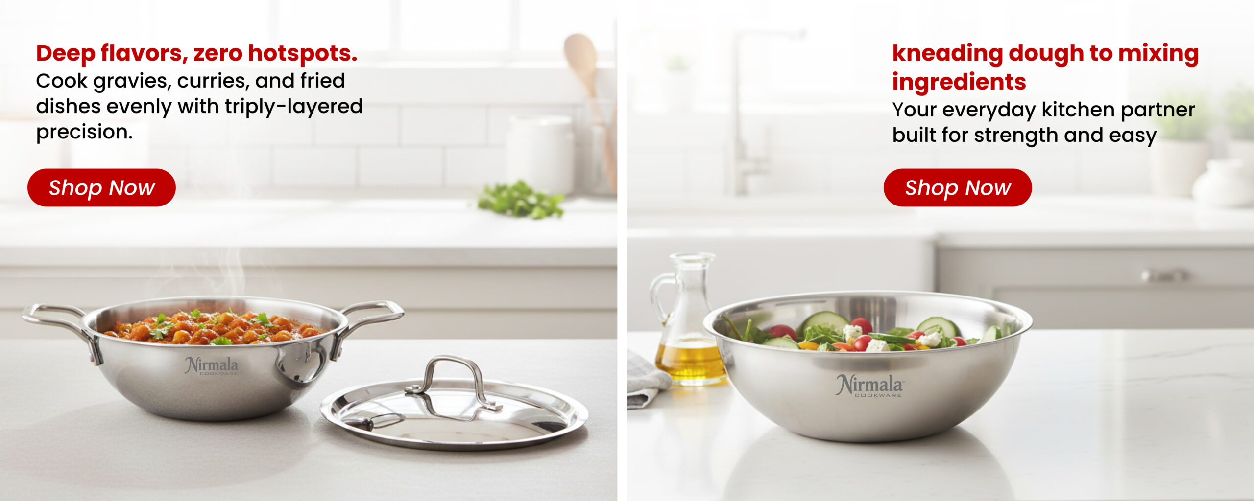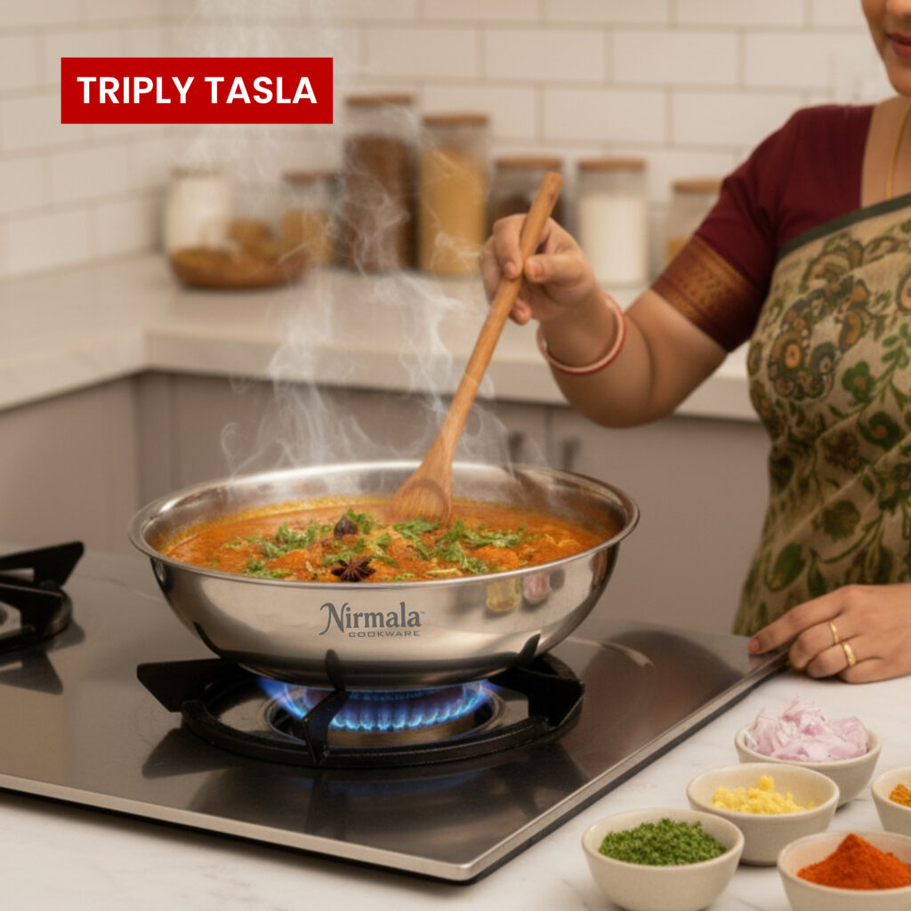 Cook smarter and healthier with the Nirmala Triply Kadai – crafted with three-layer technology for even heat, faster cooking, and lasting durability. Designed for Indian kitchens, it’s perfect for everyday cooking on both gas and induction. Experience strength, style, and performance in every meal.